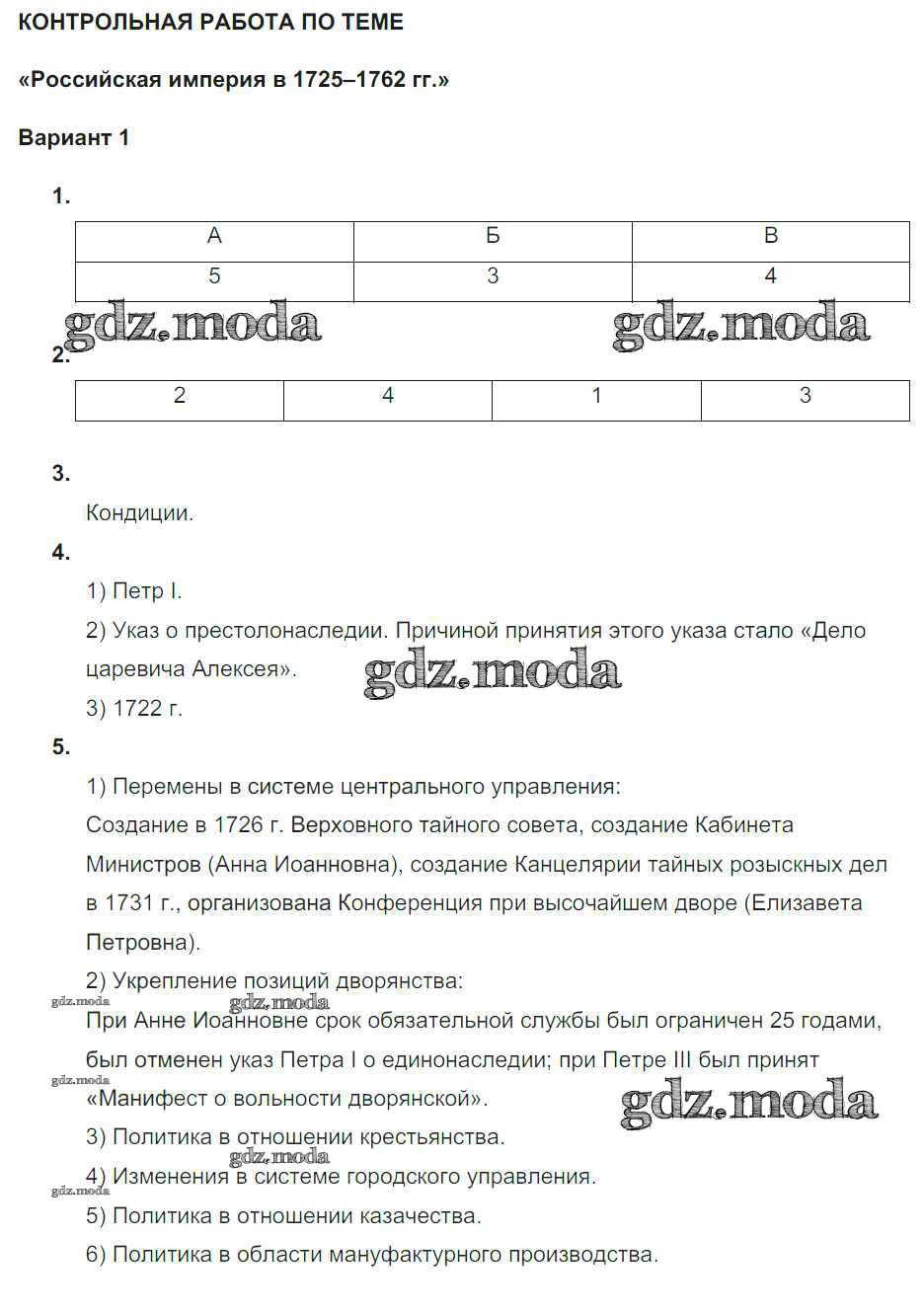 ГДЗ решение к заданию № Вариант 1 История 7 класс рабочая тетрадь. Тематический контроль Акиньшина О.Н. Национальное образование 2013 ФГОС бесплатно на гдз.мода!
