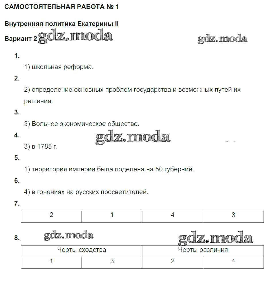ГДЗ решение к заданию № Вариант 2 История 7 класс рабочая тетрадь. Тематический контроль Акиньшина О.Н. Национальное образование 2013 ФГОС бесплатно на гдз.мода!