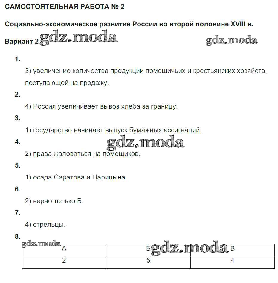 ГДЗ решение к заданию № Вариант 2 История 7 класс рабочая тетрадь. Тематический контроль Акиньшина О.Н. Национальное образование 2013 ФГОС бесплатно на гдз.мода!