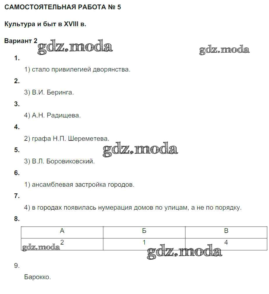 ГДЗ решение к заданию № Вариант 2 История 7 класс рабочая тетрадь. Тематический контроль Акиньшина О.Н. Национальное образование 2013 ФГОС бесплатно на гдз.мода!
