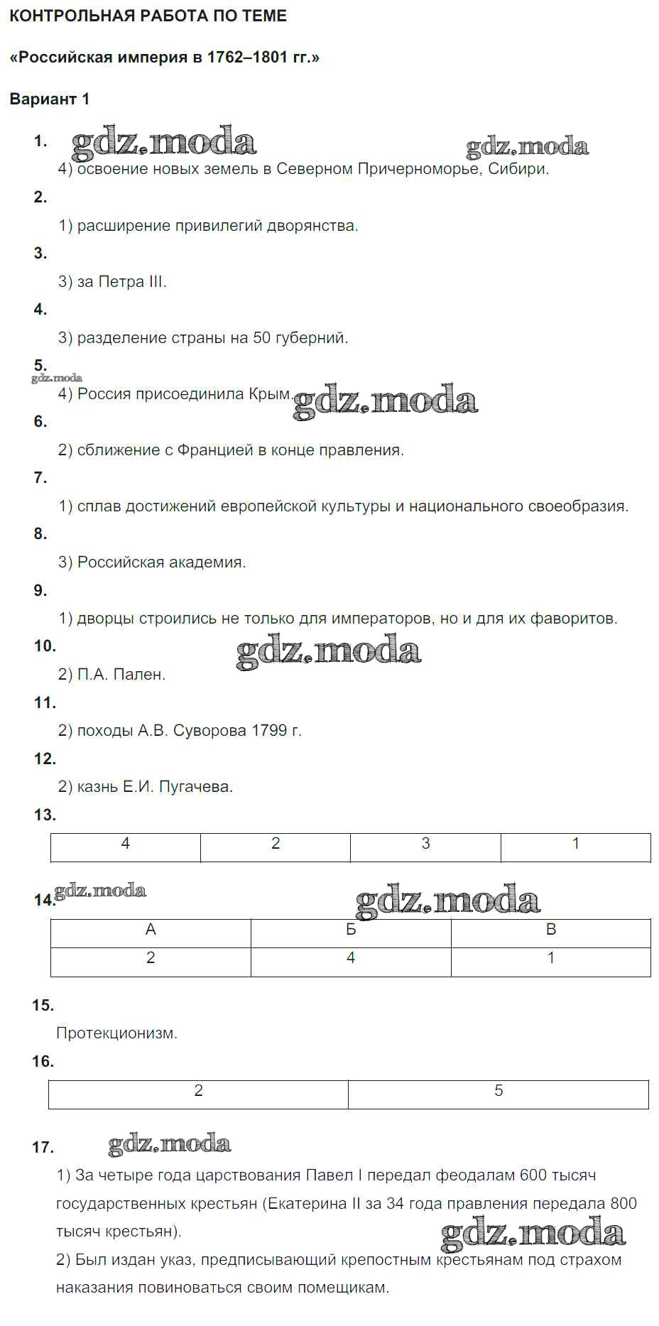 ГДЗ решение к заданию № Вариант 1 История 7 класс рабочая тетрадь. Тематический контроль Акиньшина О.Н. Национальное образование 2013 ФГОС бесплатно на гдз.мода!