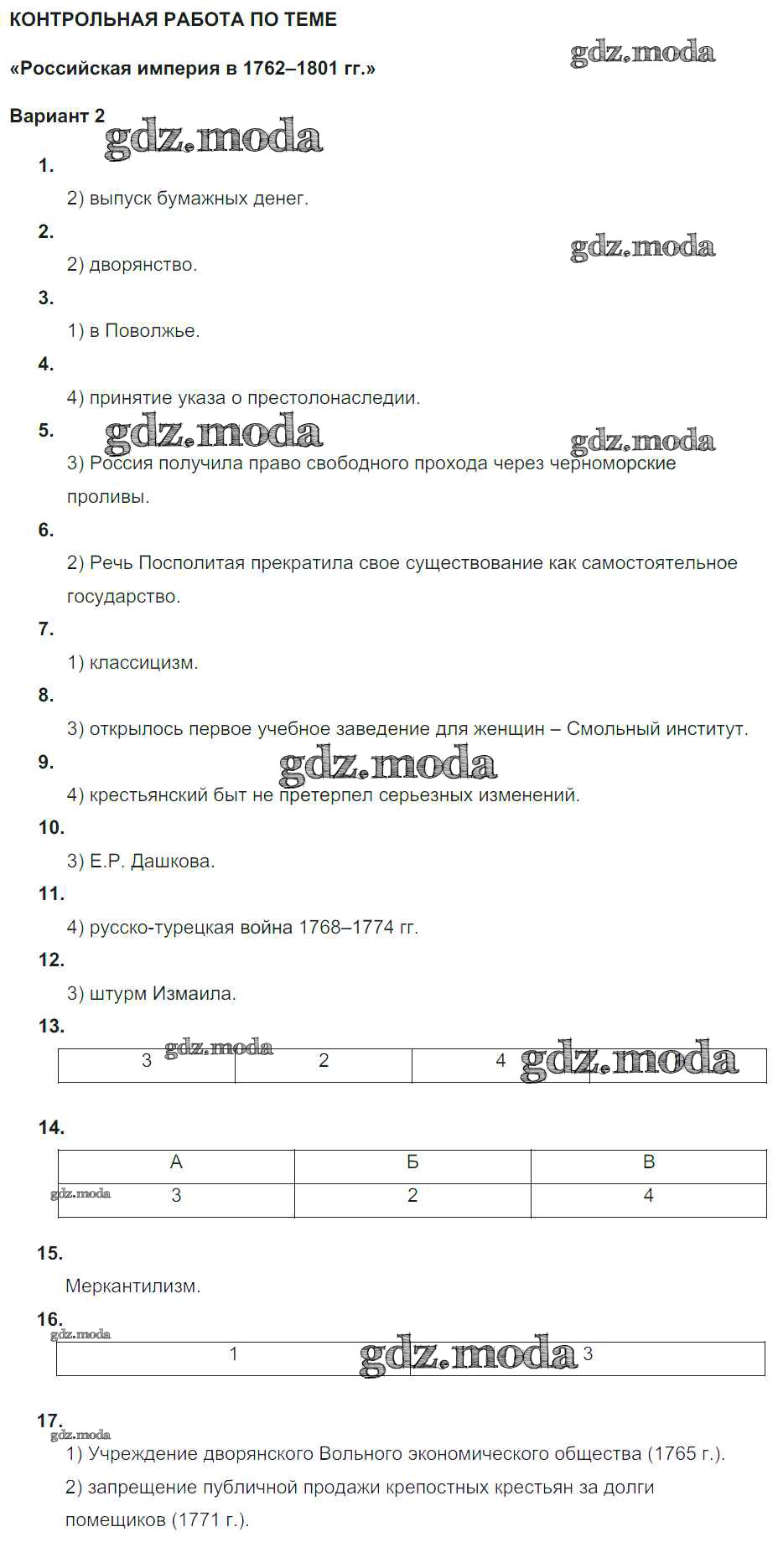 ГДЗ решение к заданию № Вариант 2 История 7 класс рабочая тетрадь. Тематический контроль Акиньшина О.Н. Национальное образование 2013 ФГОС бесплатно на гдз.мода!