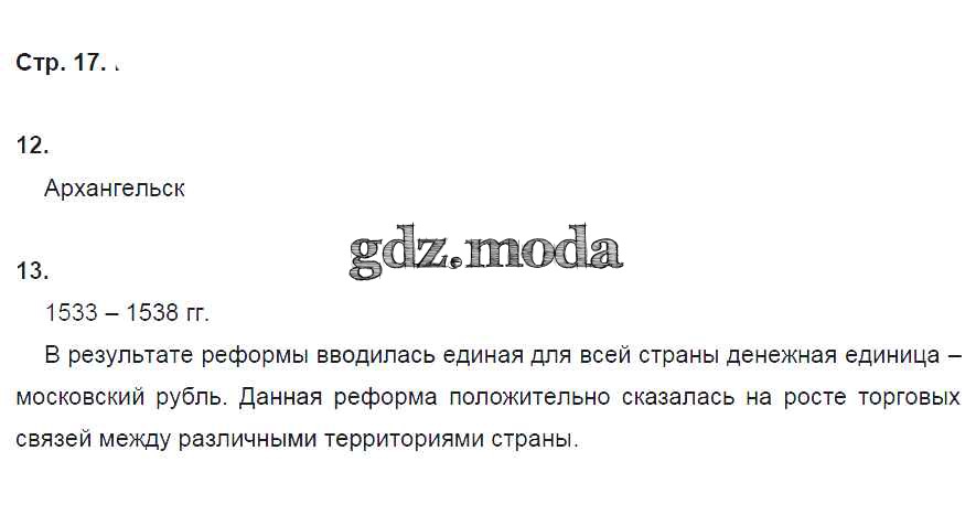 ОТВЕТ на задание № 17 Рабочая тетрадь по Истории 7 класс Чернова УМК