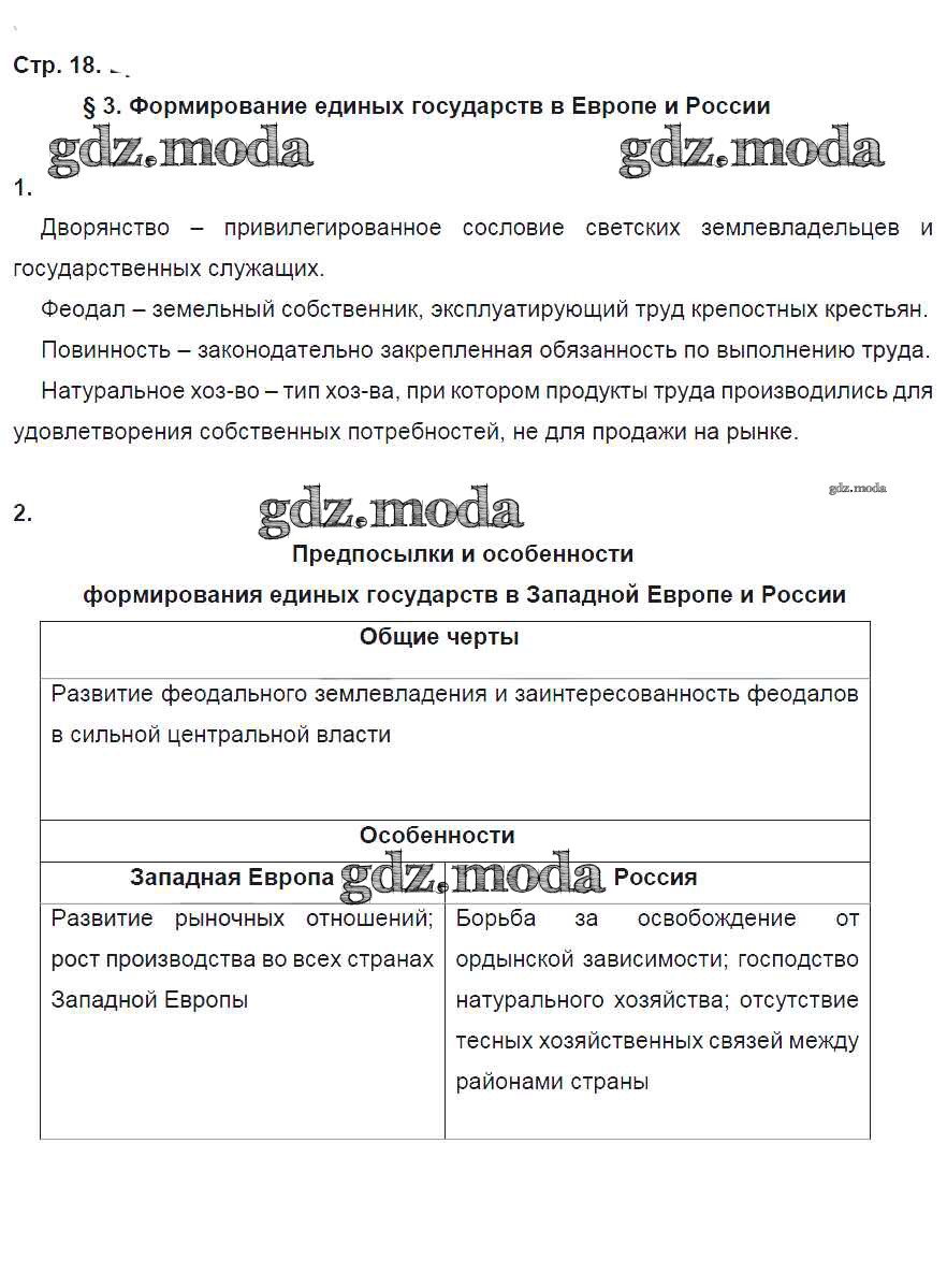 ОТВЕТ на задание № 18 Рабочая тетрадь по Истории 7 класс Чернова УМК