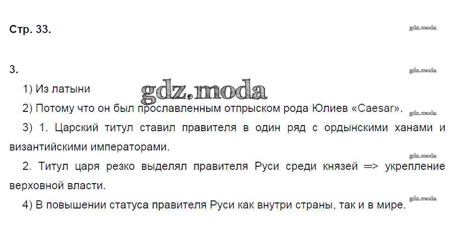 ГДЗ решение к заданию № 33 История 7 класс рабочая тетрадь Чернова М.Н. (к уч. Торкунова А.В.) Экзамен 2017 Часть 1, Часть 2 ФГОС бесплатно на гдз.мода!