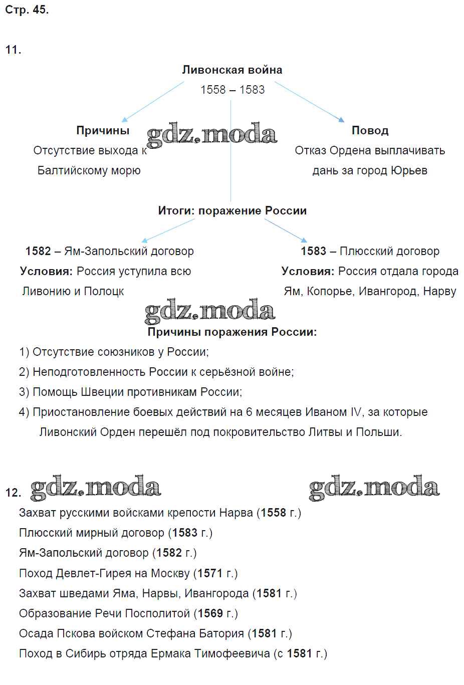 ОТВЕТ на задание № 45 Рабочая тетрадь по Истории 7 класс Чернова УМК