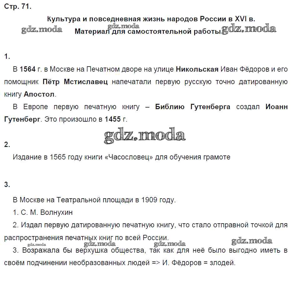 ГДЗ решение к заданию № 71 История 7 класс рабочая тетрадь Чернова М.Н. (к уч. Торкунова А.В.) Экзамен 2017 Часть 1, Часть 2 ФГОС бесплатно на гдз.мода!