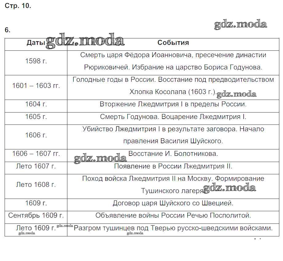 ОТВЕТ на задание № 10 Рабочая тетрадь по Истории 7 класс Чернова УМК