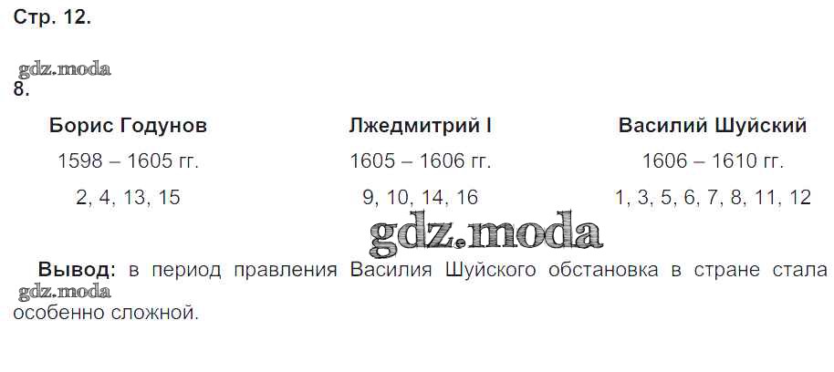 ГДЗ решение к заданию № 12 История 7 класс рабочая тетрадь Чернова М.Н. (к уч. Торкунова А.В.) Экзамен 2017 Часть 1, Часть 2 ФГОС бесплатно на гдз.мода!