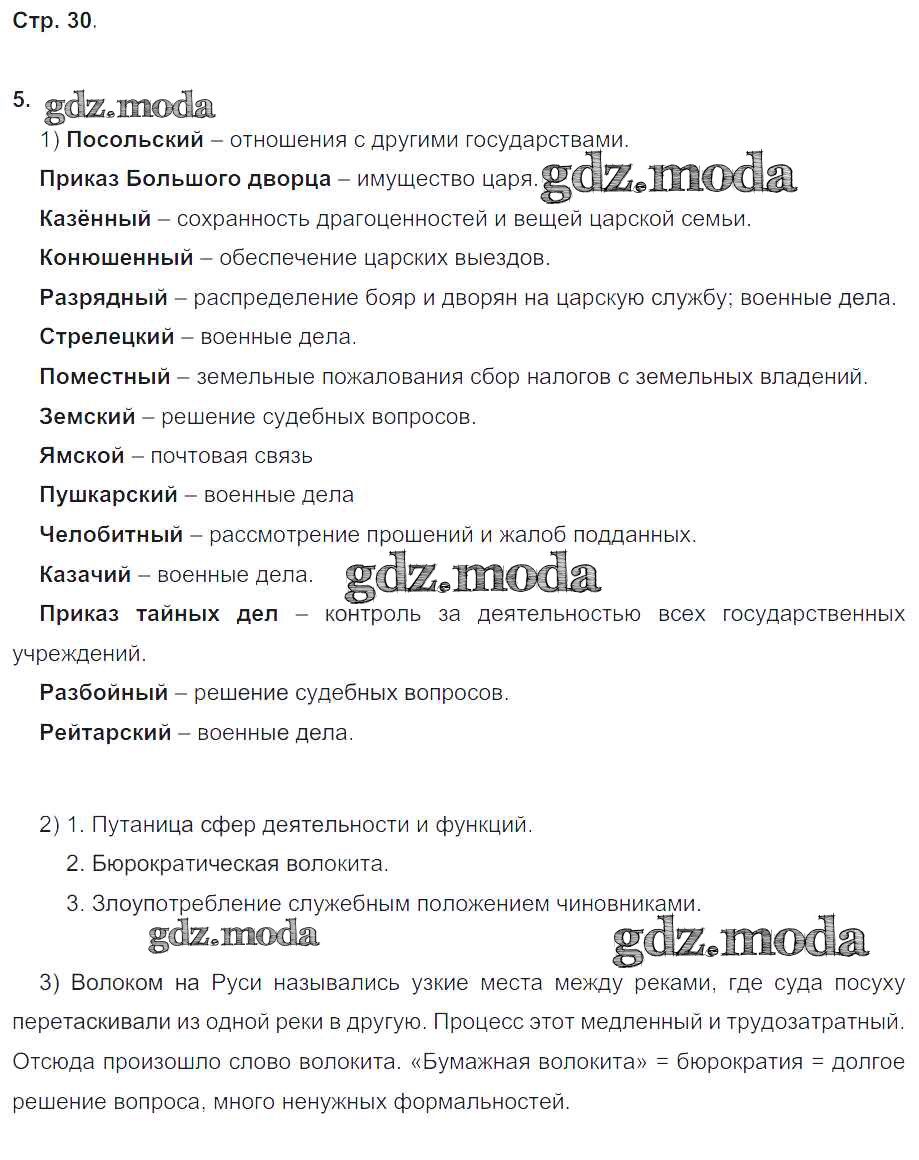 ОТВЕТ на задание № 30 Рабочая тетрадь по Истории 7 класс Чернова УМК
