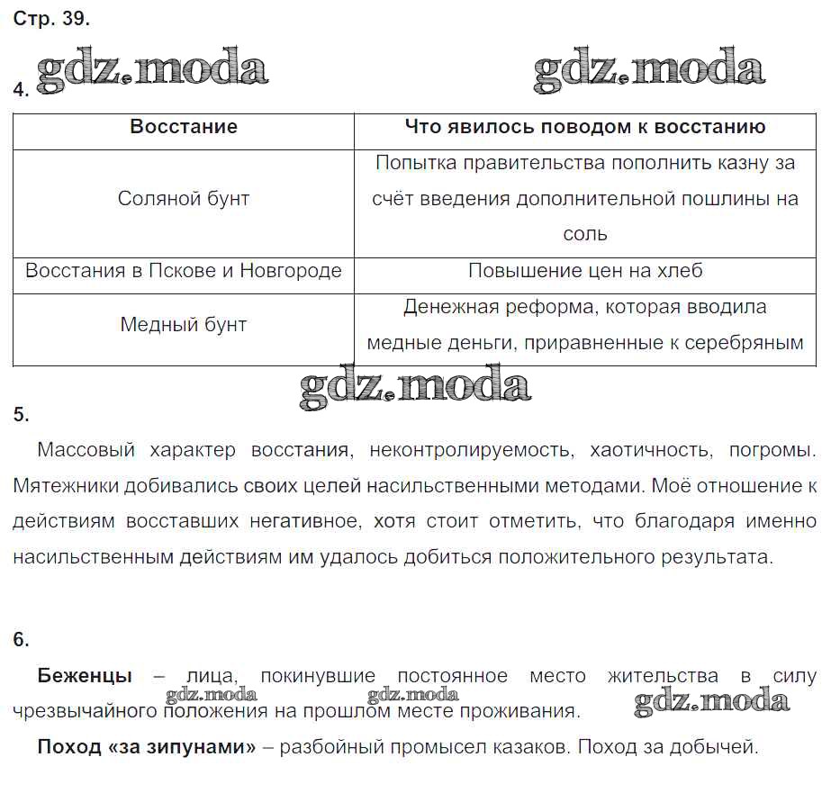 ГДЗ решение к заданию № 39 История 7 класс рабочая тетрадь Чернова М.Н. (к уч. Торкунова А.В.) Экзамен 2017 Часть 1, Часть 2 ФГОС бесплатно на гдз.мода!