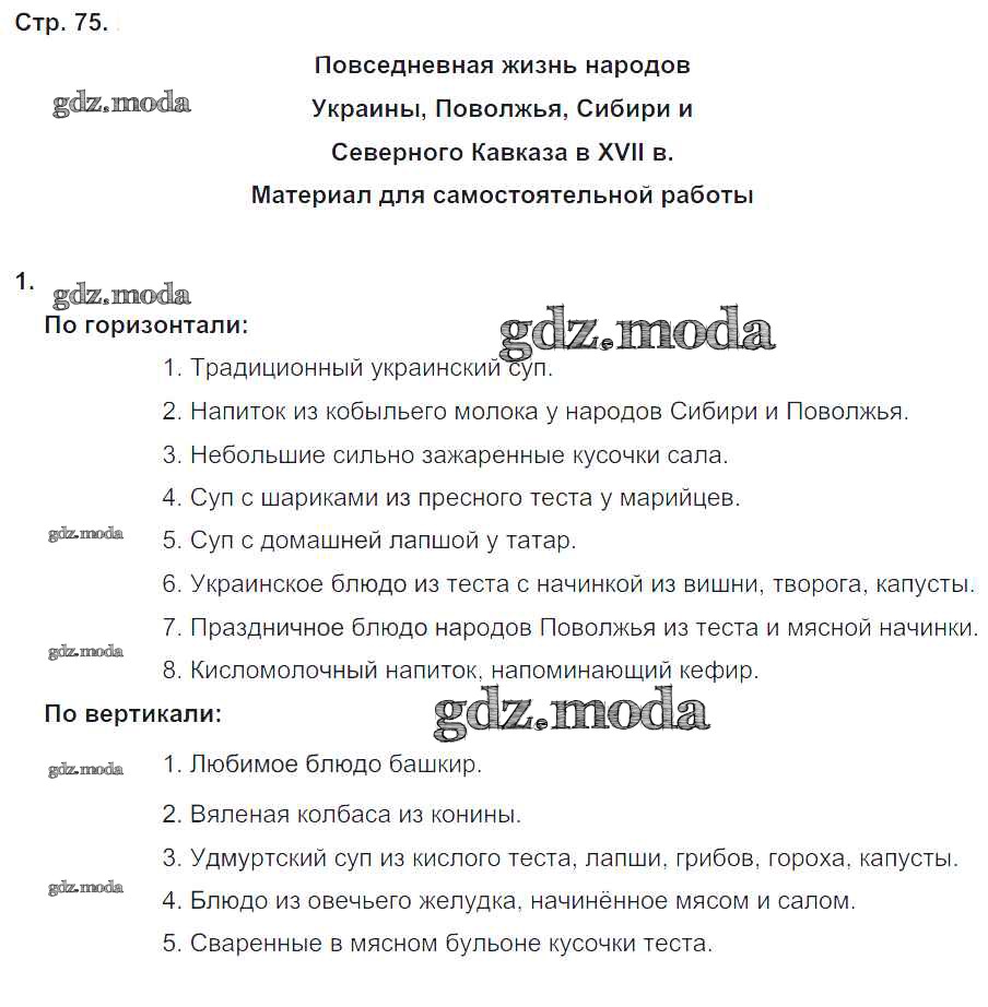 ГДЗ решение к заданию № 75 История 7 класс рабочая тетрадь Чернова М.Н. (к уч. Торкунова А.В.) Экзамен 2017 Часть 1, Часть 2 ФГОС бесплатно на гдз.мода!