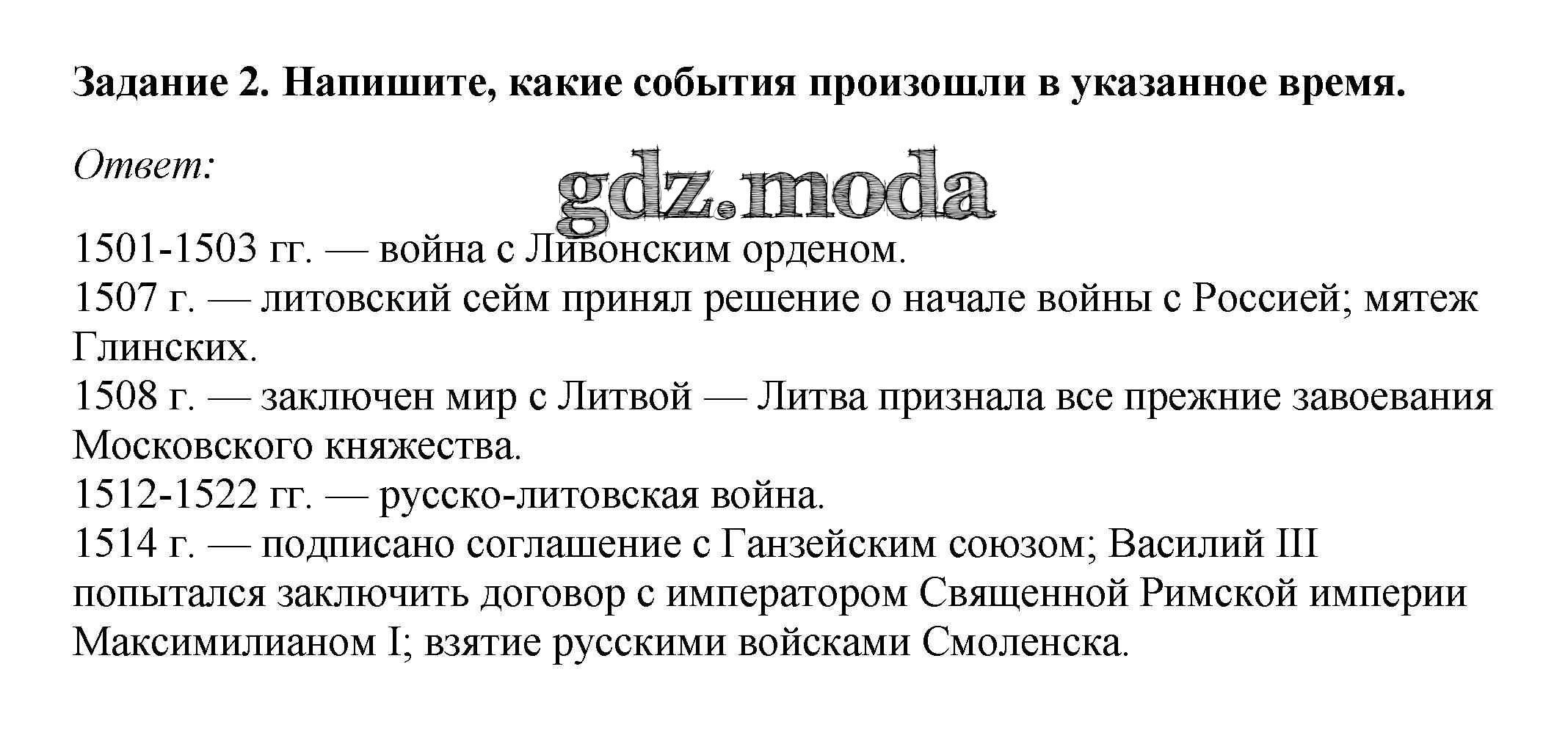 ГДЗ решение к заданию № 2 История России 7 класс рабочая тетрадь Данилов А.А. Просвещение 2016 ФГОС бесплатно на гдз.мода!