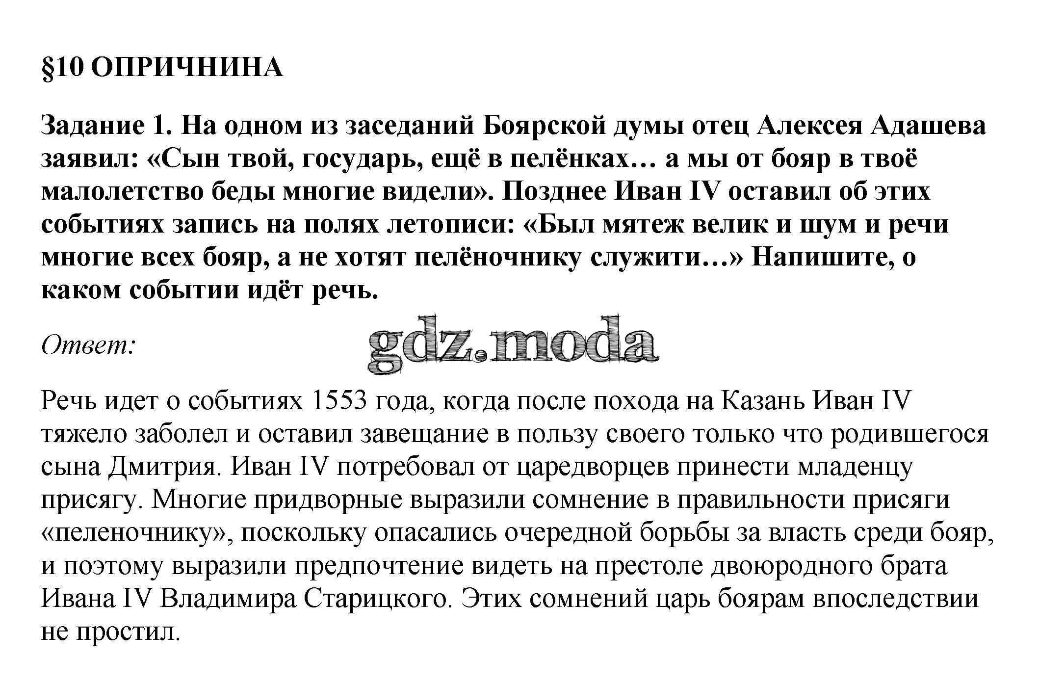 ГДЗ решение к заданию № 1 История России 7 класс рабочая тетрадь Данилов А.А. Просвещение 2016 ФГОС бесплатно на гдз.мода!