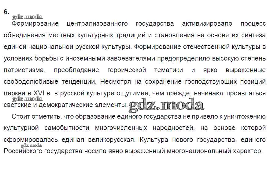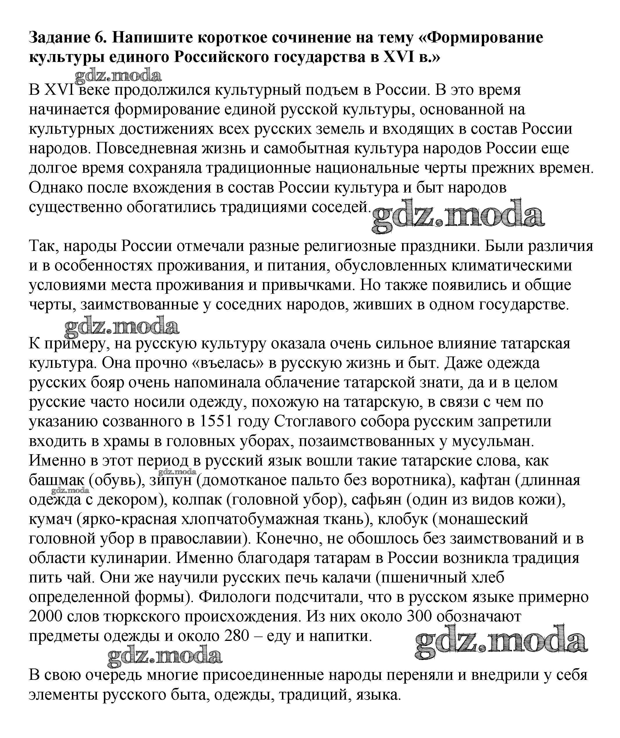 ГДЗ решение к заданию № 6 История России 7 класс рабочая тетрадь Данилов А.А. Просвещение 2016 ФГОС бесплатно на гдз.мода!