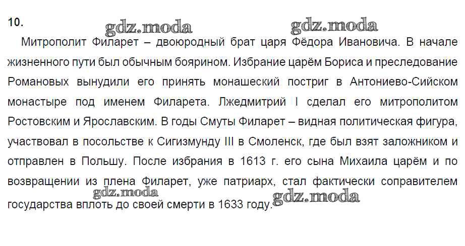 ГДЗ решение к заданию № 10 История России 7 класс рабочая тетрадь Данилов А.А. Просвещение 2016 ФГОС бесплатно на гдз.мода!