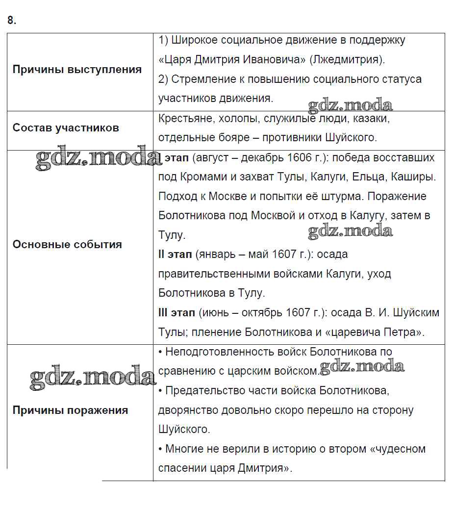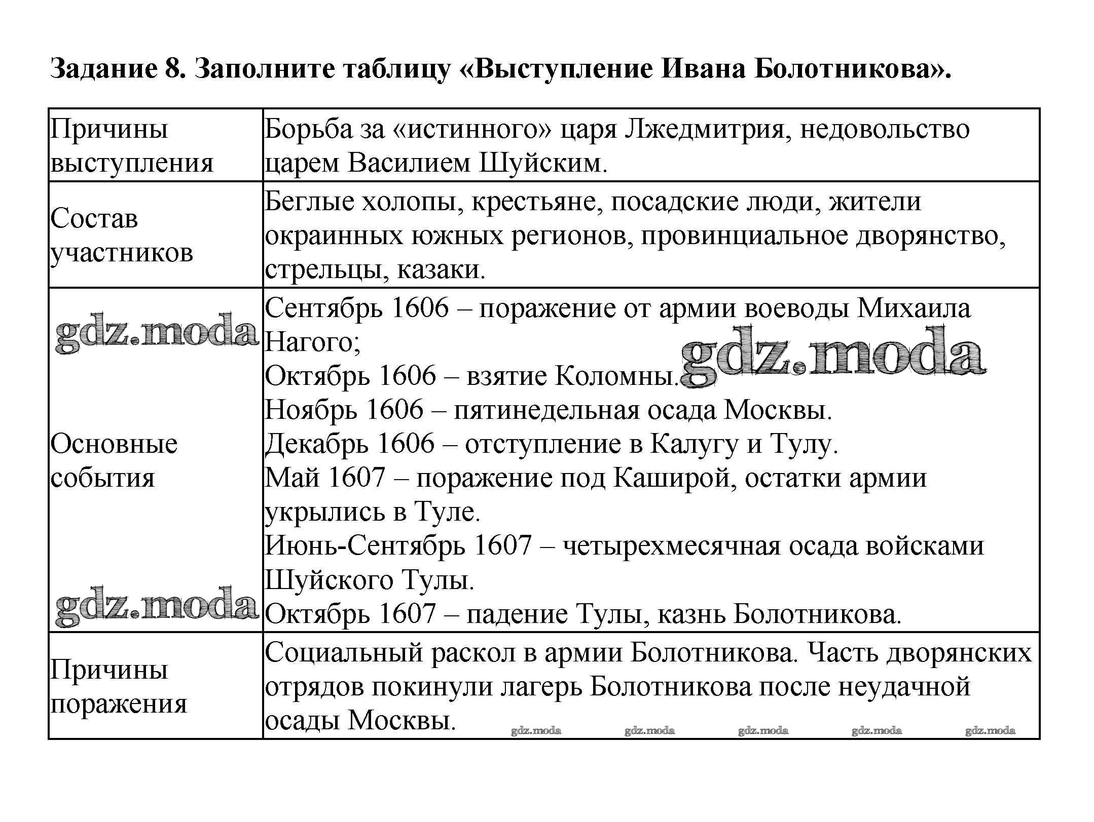 ГДЗ решение к заданию № 8 История России 7 класс рабочая тетрадь Данилов А.А. Просвещение 2016 ФГОС бесплатно на гдз.мода!