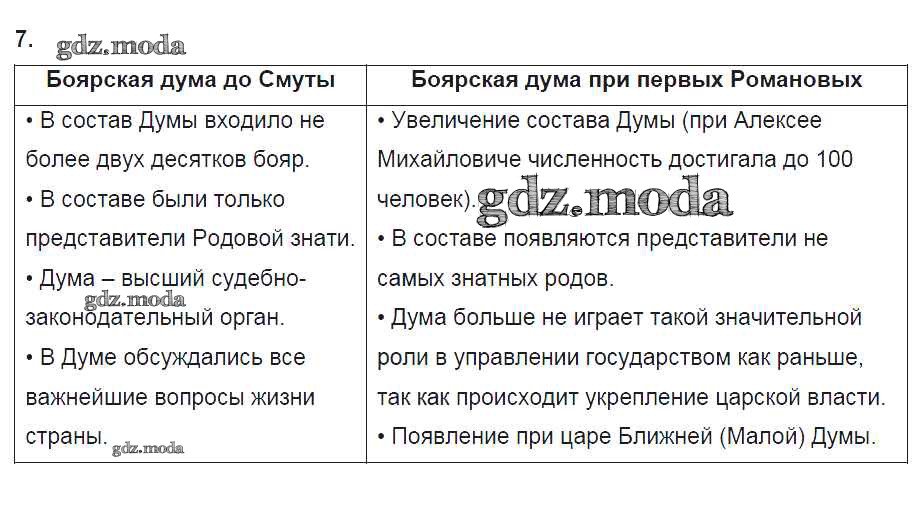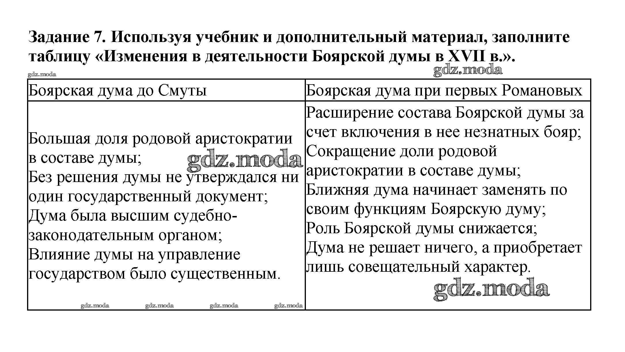ГДЗ решение к заданию № 7 История России 7 класс рабочая тетрадь Данилов А.А. Просвещение 2016 ФГОС бесплатно на гдз.мода!