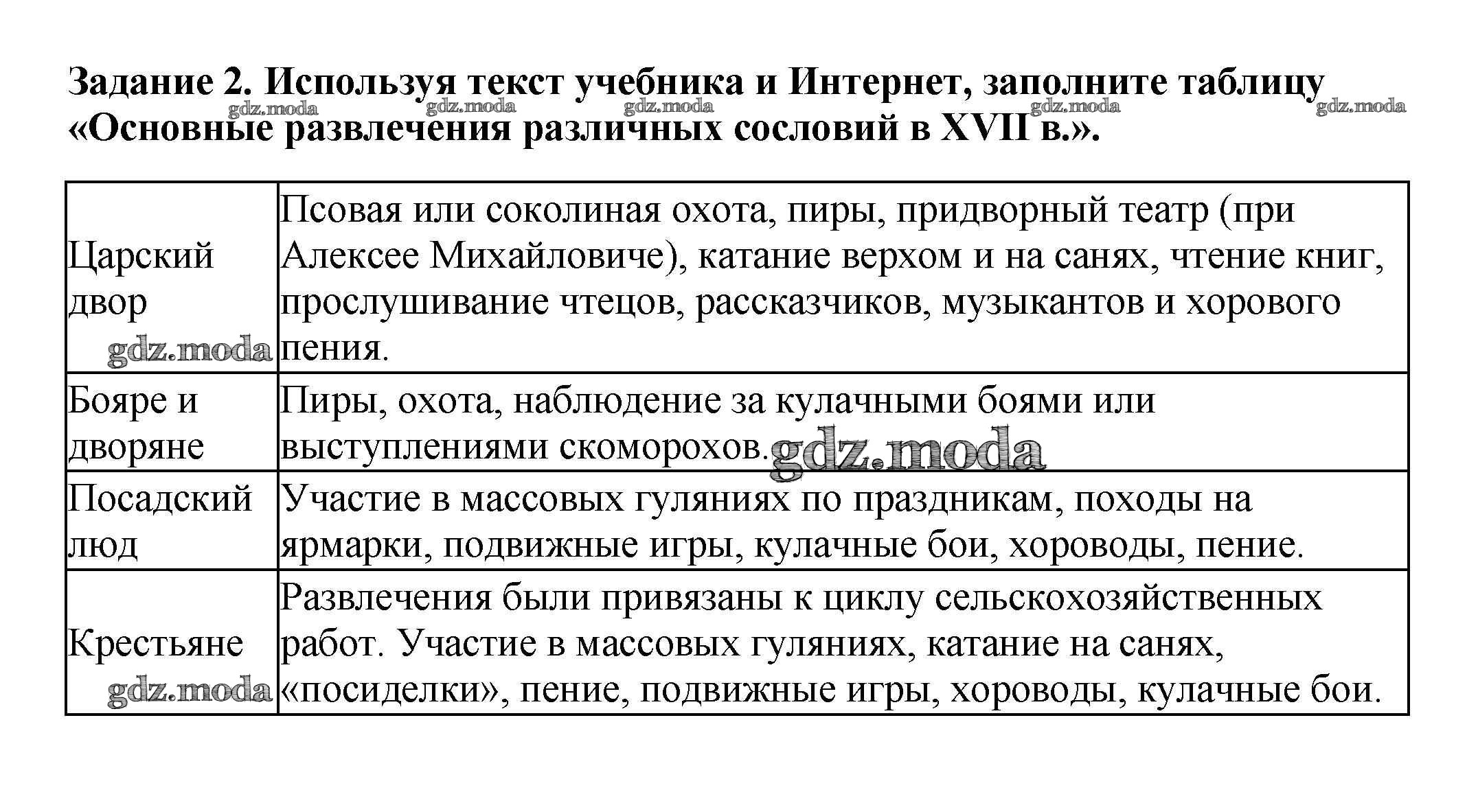 ОТВЕТ на задание № 2 Рабочая тетрадь по Истории 7 класс Данилов УМК