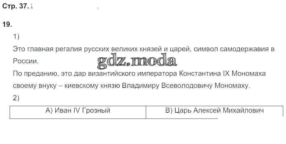 ГДЗ решение к заданию № 37 История 7 класс рабочая тетрадь. Универсальные учебные действия Гевуркова Е.А. Экзамен 2018 ФГОС бесплатно на гдз.мода!