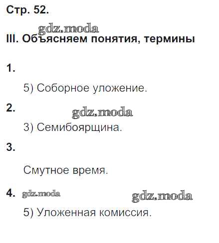 ГДЗ решение к заданию № 52 История 7 класс рабочая тетрадь. Универсальные учебные действия Гевуркова Е.А. Экзамен 2018 ФГОС бесплатно на гдз.мода!