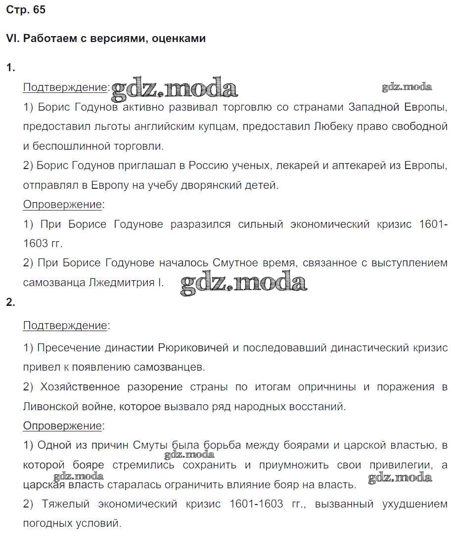 ГДЗ решение к заданию № 65 История 7 класс рабочая тетрадь. Универсальные учебные действия Гевуркова Е.А. Экзамен 2018 ФГОС бесплатно на гдз.мода!