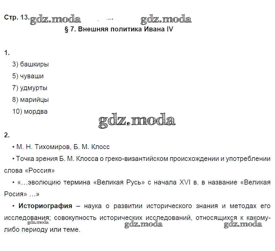 ГДЗ решение к заданию № 13 История 7 класс рабочая тетрадь Клоков В.А. Дрофа 2018 ФГОС бесплатно на гдз.мода!