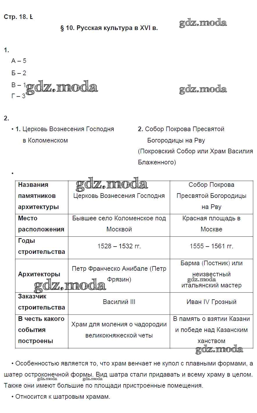 ГДЗ решение к заданию № 18 История 7 класс рабочая тетрадь Клоков В.А. Дрофа 2018 ФГОС бесплатно на гдз.мода!