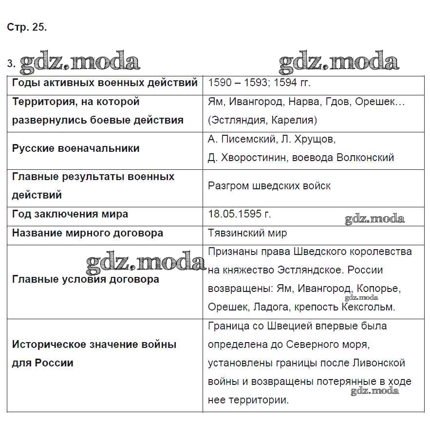 ОТВЕТ на задание № 25 Рабочая тетрадь по Истории 7 класс Симонова УМК