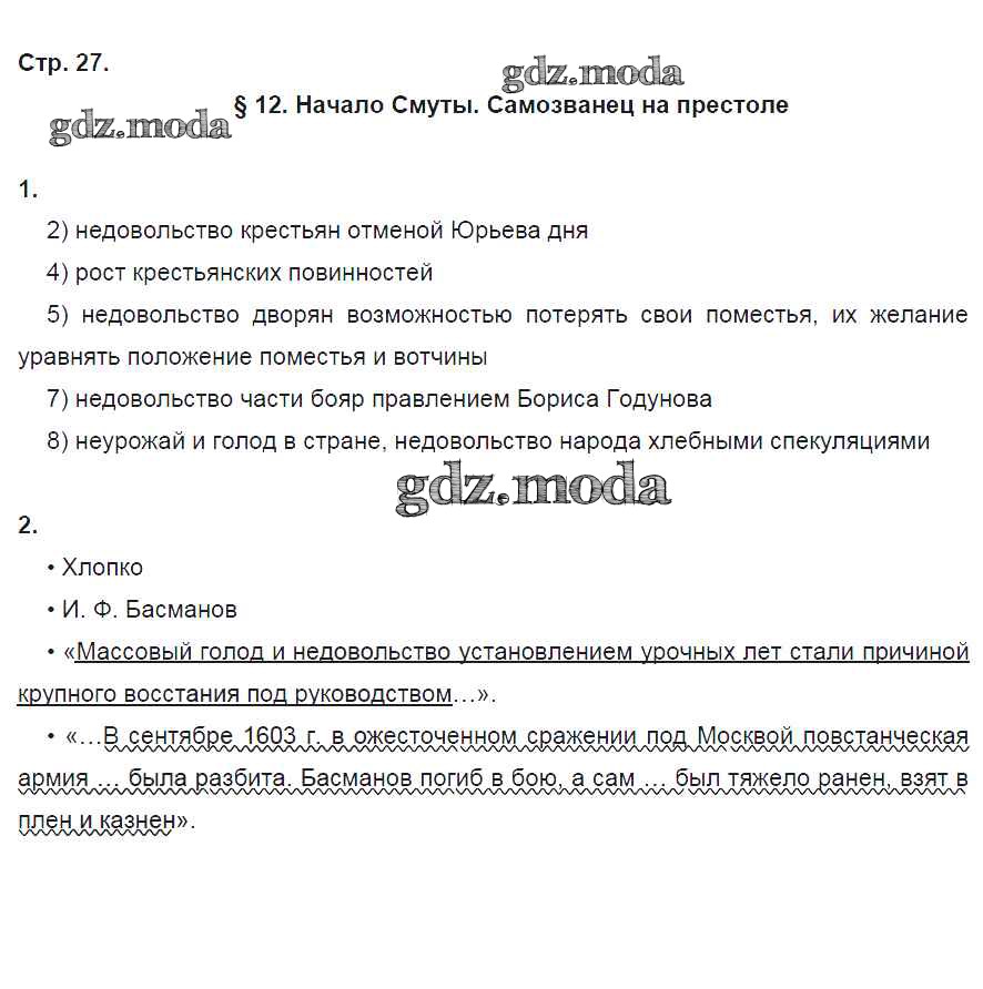 ГДЗ решение к заданию № 27 История 7 класс рабочая тетрадь Клоков В.А. Дрофа 2018 ФГОС бесплатно на гдз.мода!