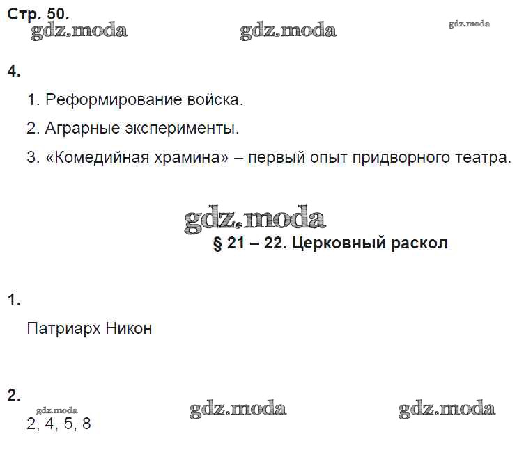 ГДЗ решение к заданию № 50 История 7 класс рабочая тетрадь Клоков В.А. Дрофа 2018 ФГОС бесплатно на гдз.мода!