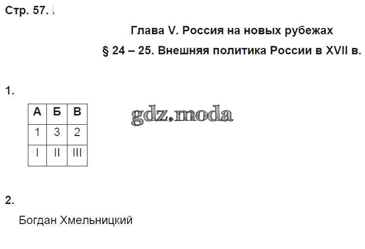 ГДЗ решение к заданию № 57 История 7 класс рабочая тетрадь Клоков В.А. Дрофа 2018 ФГОС бесплатно на гдз.мода!