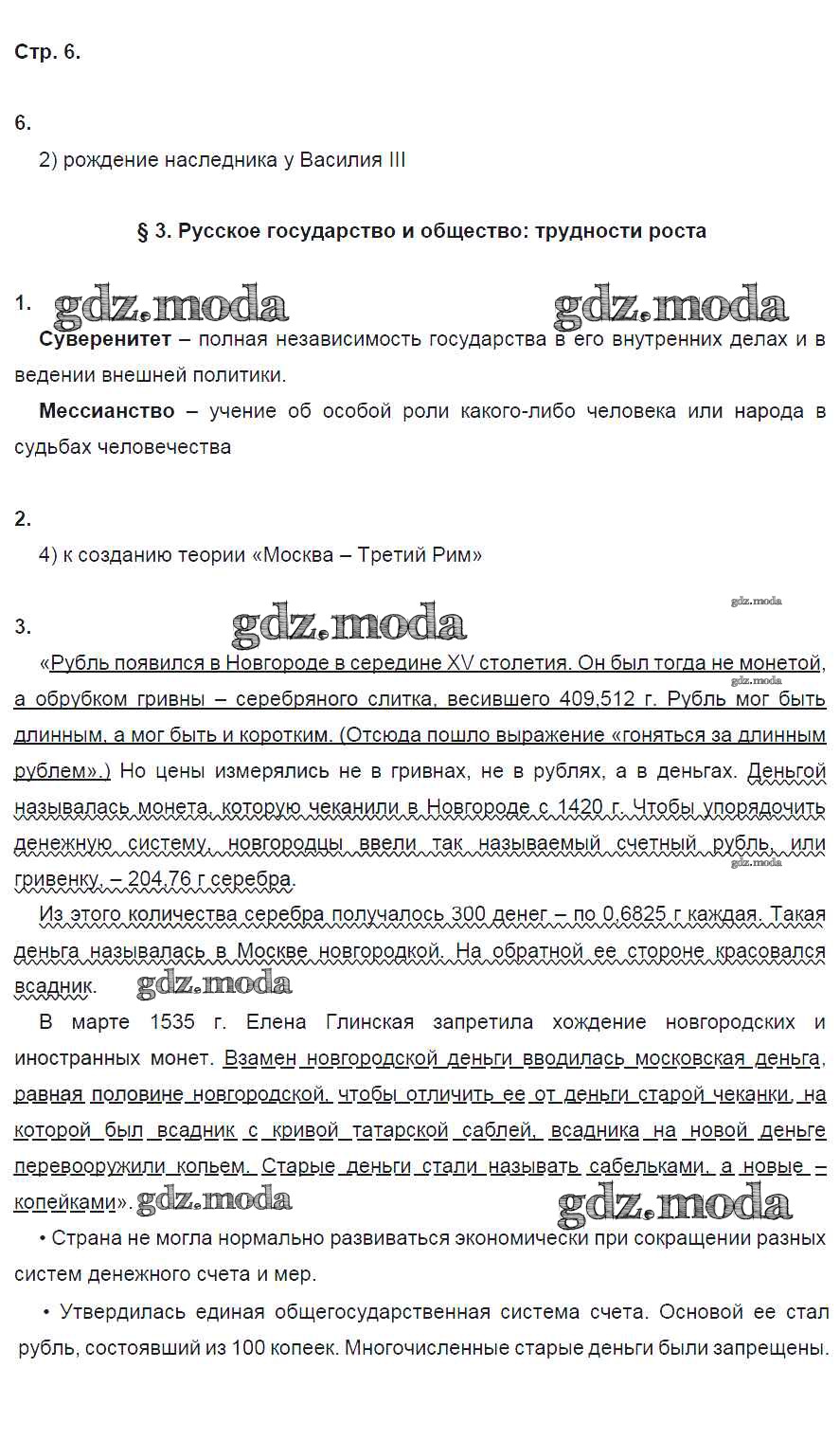 ОТВЕТ на задание № 6 Рабочая тетрадь по Истории 7 класс Симонова УМК