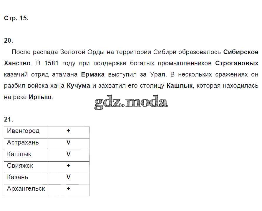 ГДЗ решение к заданию № 15 История 7 класс рабочая тетрадь Кочегаров К.А. Русское слово 2017 ФГОС бесплатно на гдз.мода!