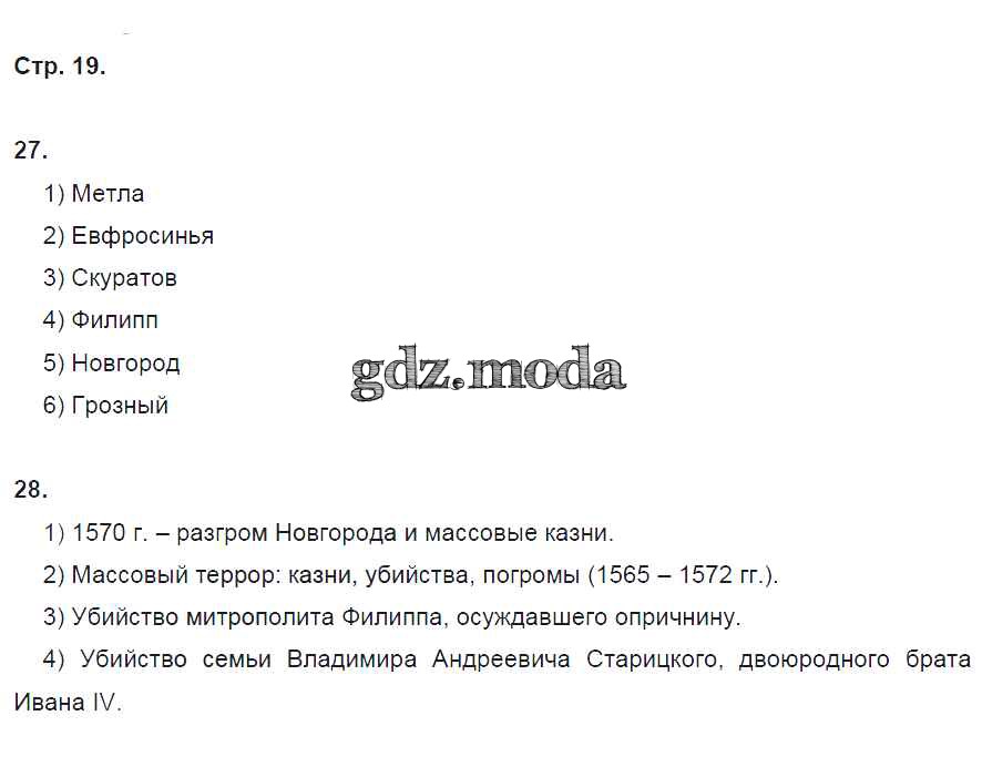 ГДЗ решение к заданию № 19 История 7 класс рабочая тетрадь Кочегаров К.А. Русское слово 2017 ФГОС бесплатно на гдз.мода!
