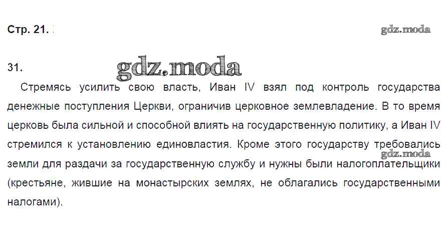 ГДЗ решение к заданию № 21 История 7 класс рабочая тетрадь Кочегаров К.А. Русское слово 2017 ФГОС бесплатно на гдз.мода!