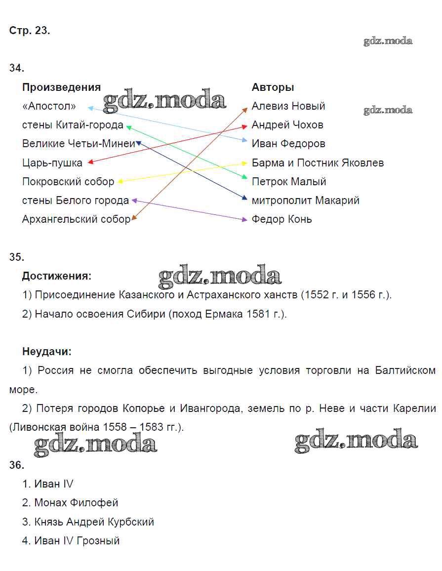 ГДЗ решение к заданию № 23 История 7 класс рабочая тетрадь Кочегаров К.А. Русское слово 2017 ФГОС бесплатно на гдз.мода!
