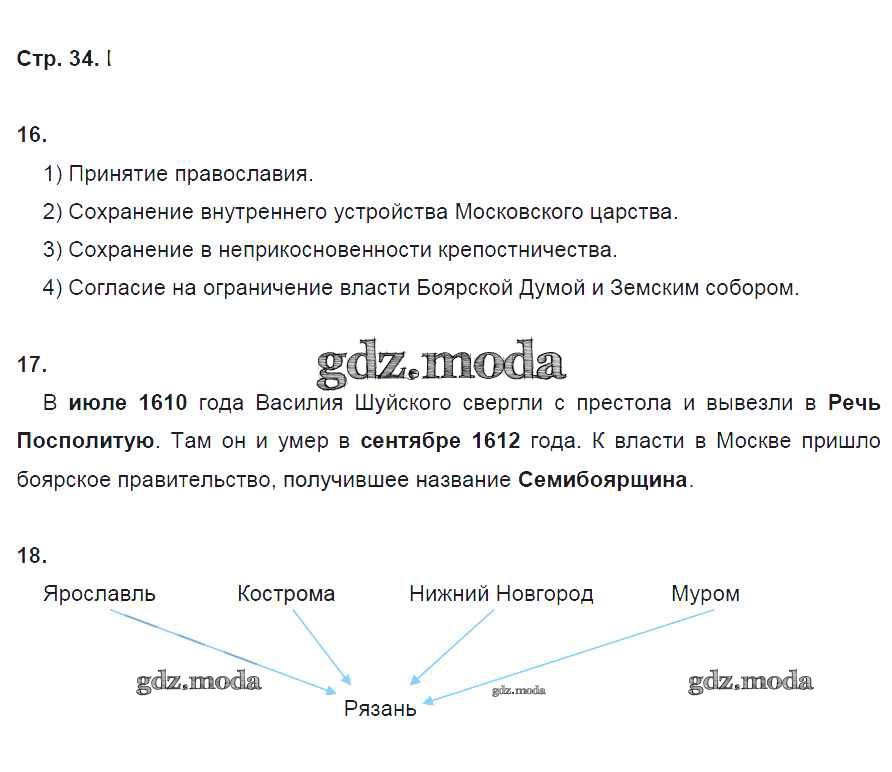 ГДЗ решение к заданию № 34 История 7 класс рабочая тетрадь Кочегаров К.А. Русское слово 2017 ФГОС бесплатно на гдз.мода!