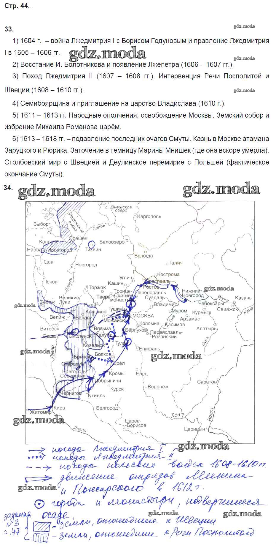ГДЗ решение к заданию № 44 История 7 класс рабочая тетрадь Кочегаров К.А. Русское слово 2017 ФГОС бесплатно на гдз.мода!