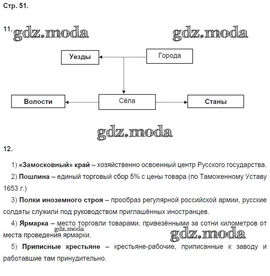 ГДЗ решение к заданию № 51 История 7 класс рабочая тетрадь Кочегаров К.А. Русское слово 2017 ФГОС бесплатно на гдз.мода!