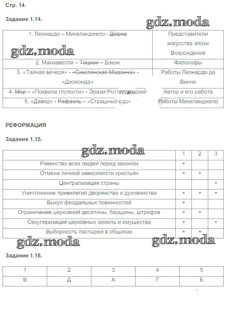 ГДЗ решение к заданию № 14 История 7 класс рабочая тетрадь с комплектом контурных карт Пономарев М.В. Экзамен 2016 ФГОС бесплатно на гдз.мода!