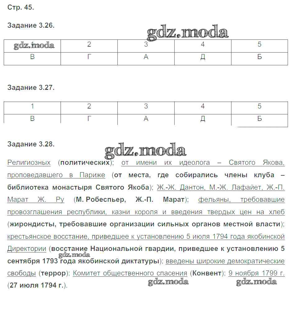 ГДЗ решение к заданию № 45 История 7 класс рабочая тетрадь с комплектом контурных карт Пономарев М.В. Экзамен 2016 ФГОС бесплатно на гдз.мода!