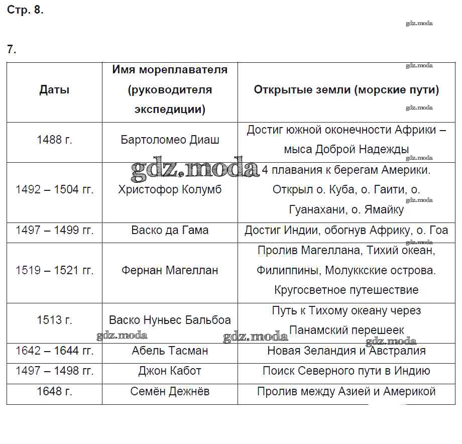 ГДЗ решение к заданию № 8 История 7 класс рабочая тетрадь Стецюра Т.Д. Русское слово 2017 ФГОС бесплатно на гдз.мода!