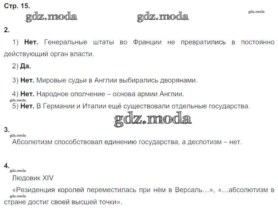ГДЗ решение к заданию № 15 История 7 класс рабочая тетрадь Юдовская А.Я. Просвещение 2015 Часть 1, Часть 2 ФГОС бесплатно на гдз.мода!