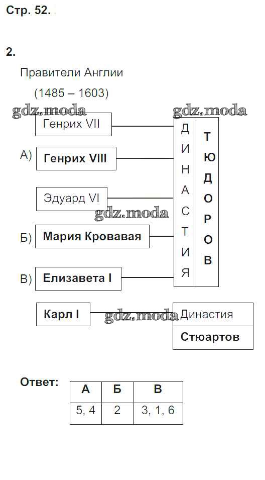 ГДЗ решение к заданию № 52 История 7 класс рабочая тетрадь Юдовская А.Я. Просвещение 2015 Часть 1, Часть 2 ФГОС бесплатно на гдз.мода!