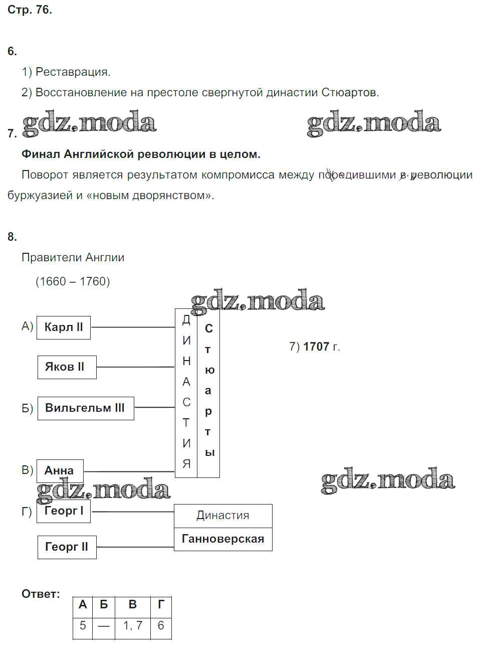 ГДЗ решение к заданию № 76 История 7 класс рабочая тетрадь Юдовская А.Я. Просвещение 2015 Часть 1, Часть 2 ФГОС бесплатно на гдз.мода!