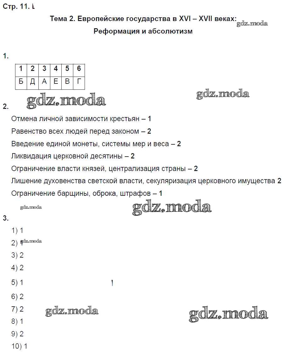 ОТВЕТ на задание № 11 Рабочая тетрадь по Истории 7 класс Волкова УМК