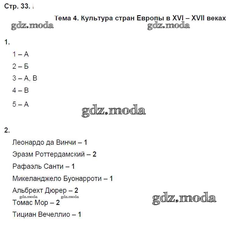 ГДЗ решение к заданию № 33 История 7 класс рабочая тетрадь с контурными картами Волкова Е.В. Дрофа 2018 ФГОС бесплатно на гдз.мода!