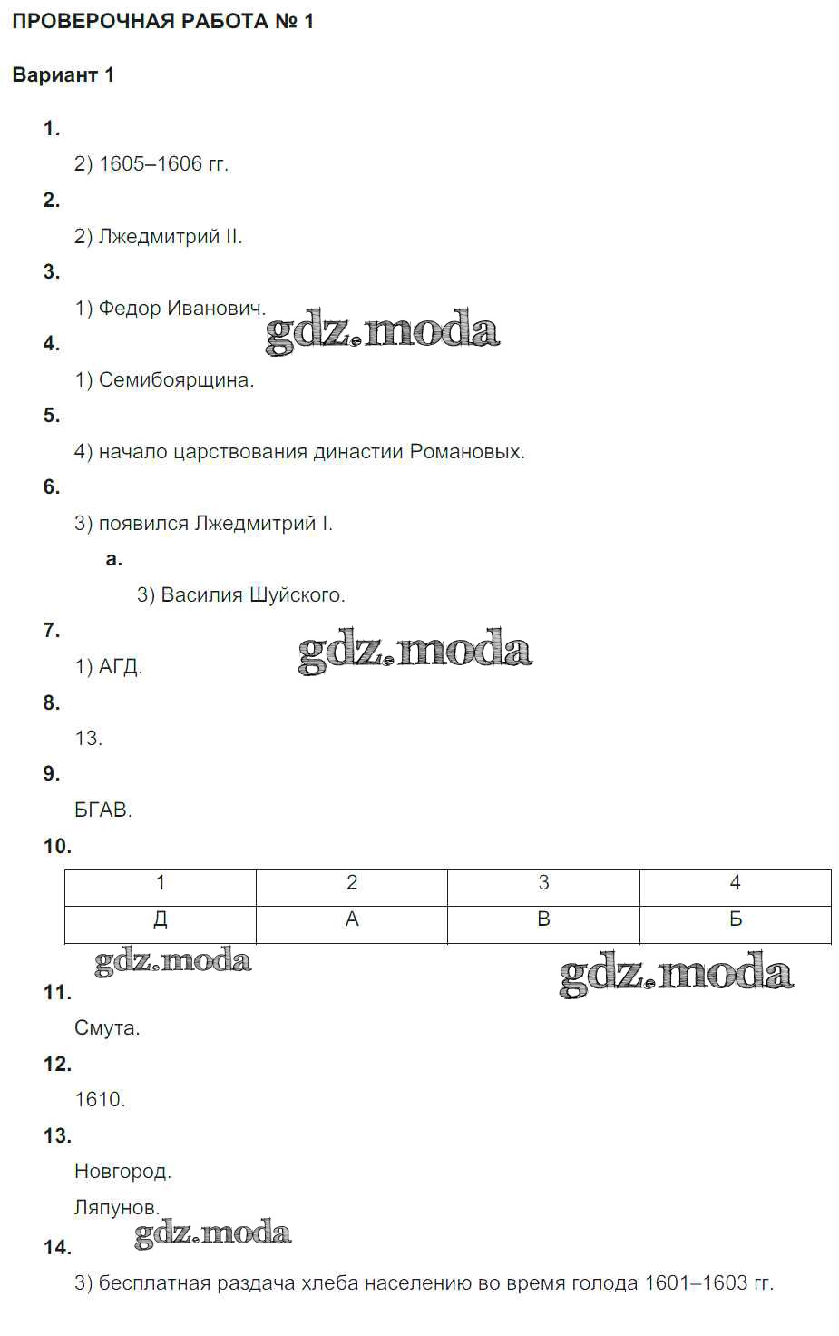 Россия на рубеже XVI-XVII вв. / проверочная работа 1 / вариант 1