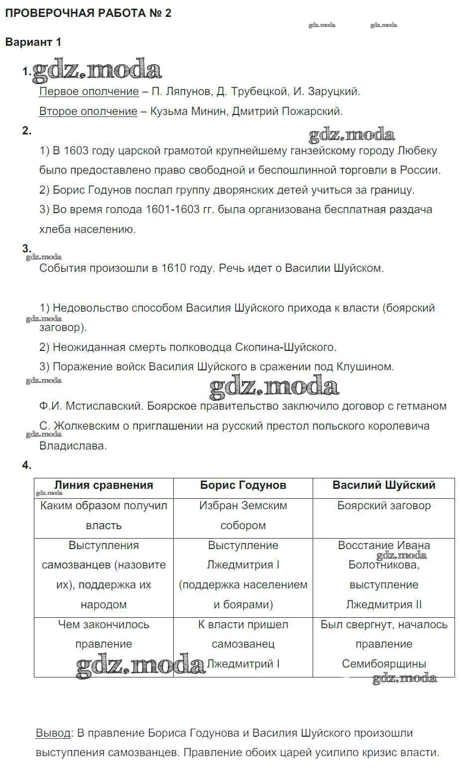 Россия на рубеже XVI-XVII вв. / проверочная работа 2 / вариант 1